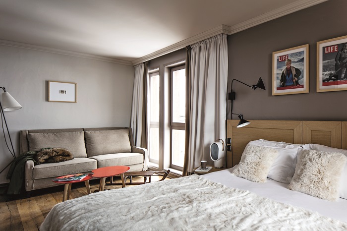 Comfort room В номерах «Комфорт» площадью от 22 до 28 м² могут разместиться 2 человека на двух односпальных или одной двуспальной кровати. В номере «Комфорт» есть балкон, ванная комната с ванной, феном, туалетно-косметическими принадлежностями, а также мини-бар, телевизор с плоским экраном и сейф. Благодаря благородным материалам в этом номере «Комфорт» изысканный и современный стиль прекрасно сочетается с теплой атмосферой горной гостиницы. Принимая во внимание коды гостиной 1950-х годов, номера «Комфорт» расширяют эстетический уклон отеля, подчеркивая его интимный характер. Privilege room В номерах Privilege площадью от 29 до 38 м² могут разместиться 2 взрослых и 1 ребенок в возрасте до 12 лет включительно. В номере есть две односпальные кровати или одна двуспальная и дополнительная кровать для ребенка. Также имеется балкон, ванная комната с ванной, феном и туалетно-косметическими принадлежностями, мини-бар, телевизор с плоским экраном и сейф. Особенностью для семей является возможность объединения номера Privilege с номером Comfort для создания настоящего люкса. Один номер этой категории доступен для гостей с ограниченными физическими возможностями. Suite В люксе площадью 68 м² могут разместиться 2 взрослых и 2 детей в возрасте до 12 лет включительно на верхнем этаже отеля. Вы можете выбрать между двуспальной кроватью или 2 односпальными кроватями. Словно частное шале на вершине отеля, люкс представляет собой привилегированное и уникальное пространство: антикварные предметы, мансардные крыши, гостиная, камин, собственная терраса и две спальни с двуспальными кроватями... Комфортабельный и роскошный люкс убежище с видом на долину.