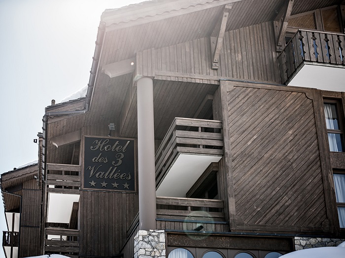Des Trois Valees расположен в самом центре станции, с прямым выходом на трассу (ski-in/ski-out). Отель был полностью обновлен в 2013 году. Интерьер отеля соединяет в себе классический и стиль модерн 50-х годов. В отеле всего 31 номер, в каждом из них: спутниковое ТВ, телефон, бесплатный Wi-Fi, iPad (по запросу), телефон, мини-бар, сейф, балкон либо терраса. В Спа-центре отеля: сауна, хамам, большое джакузи (3х4 м), косметический и массажный кабинеты. В отеле имеется ресторан, бар и лаунж. Завтрак (шведский стол) накрывают в лаунж-зоне. Обед можно организовать не только в ресторане, но и на открытой террасе отеля, с видом на долину, при условии хорошей погоды. К услугам гостей: няня по запросу, консьерж-сервис, прачечная, парковка, бесплатный Wi-Fi в номерах, конференц-зал (для 40 чел).